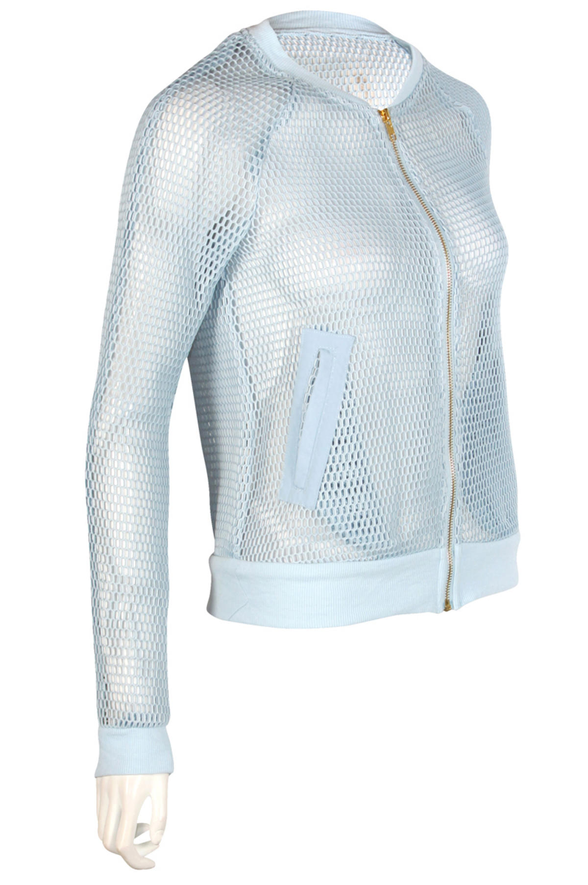 Home > Light Blue Netted Bomber Jacket