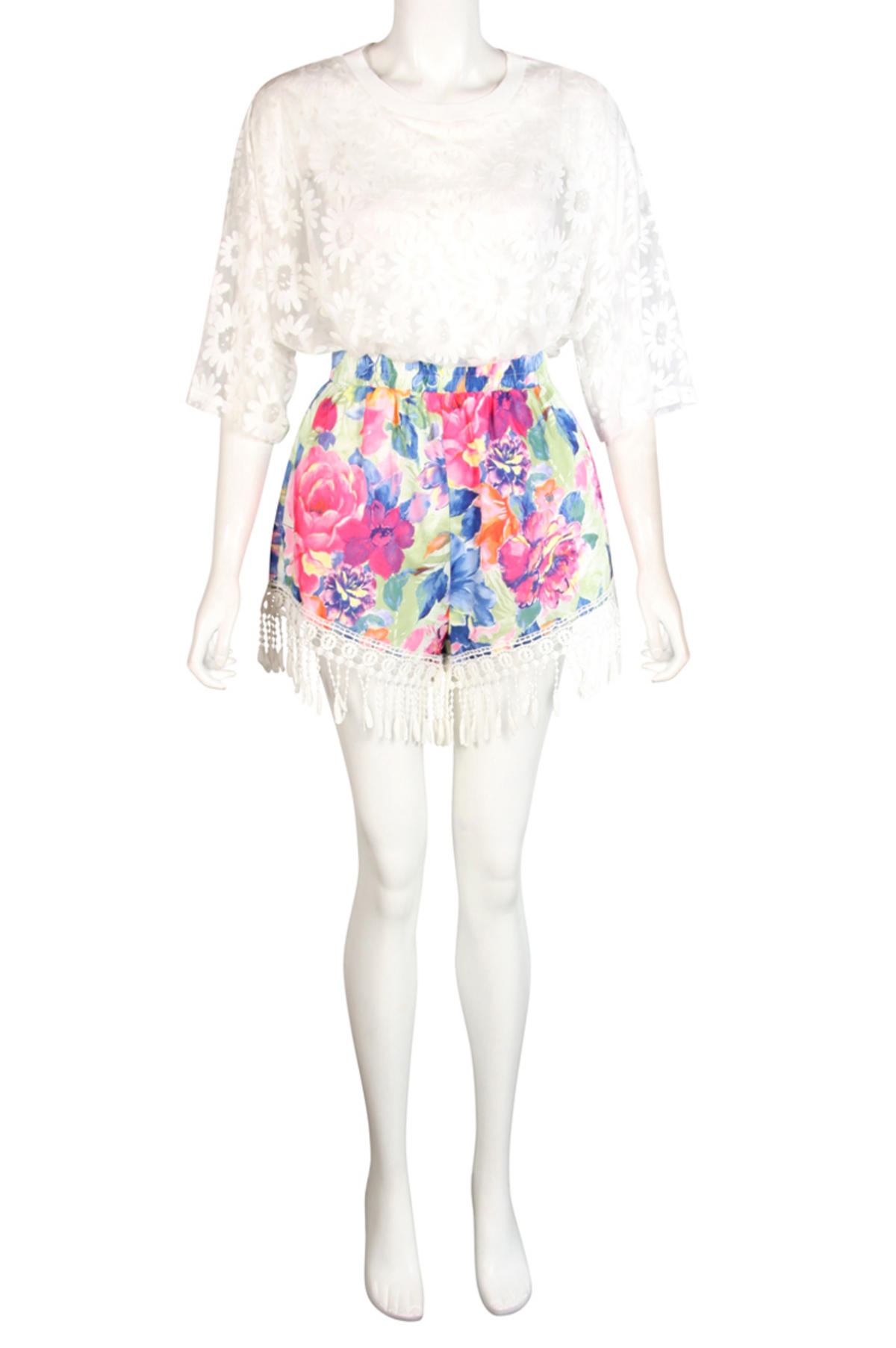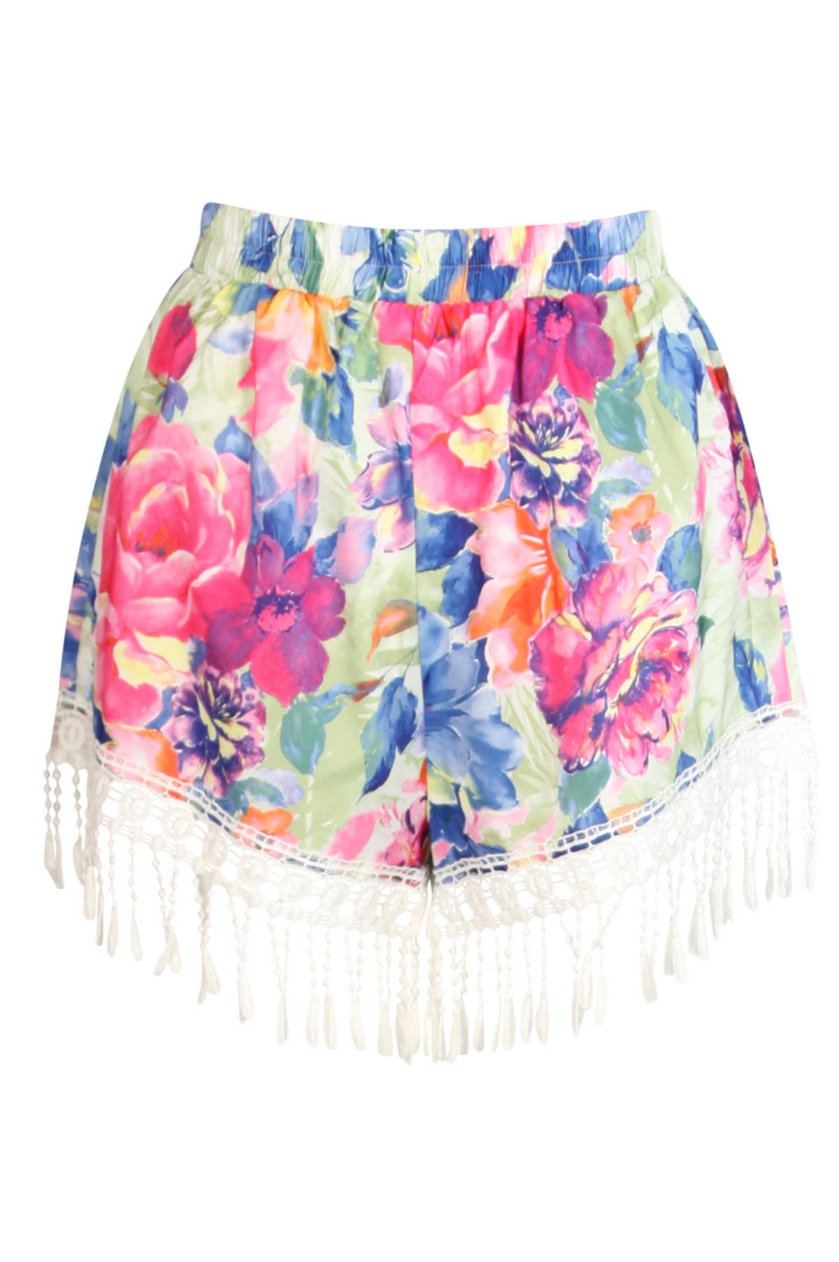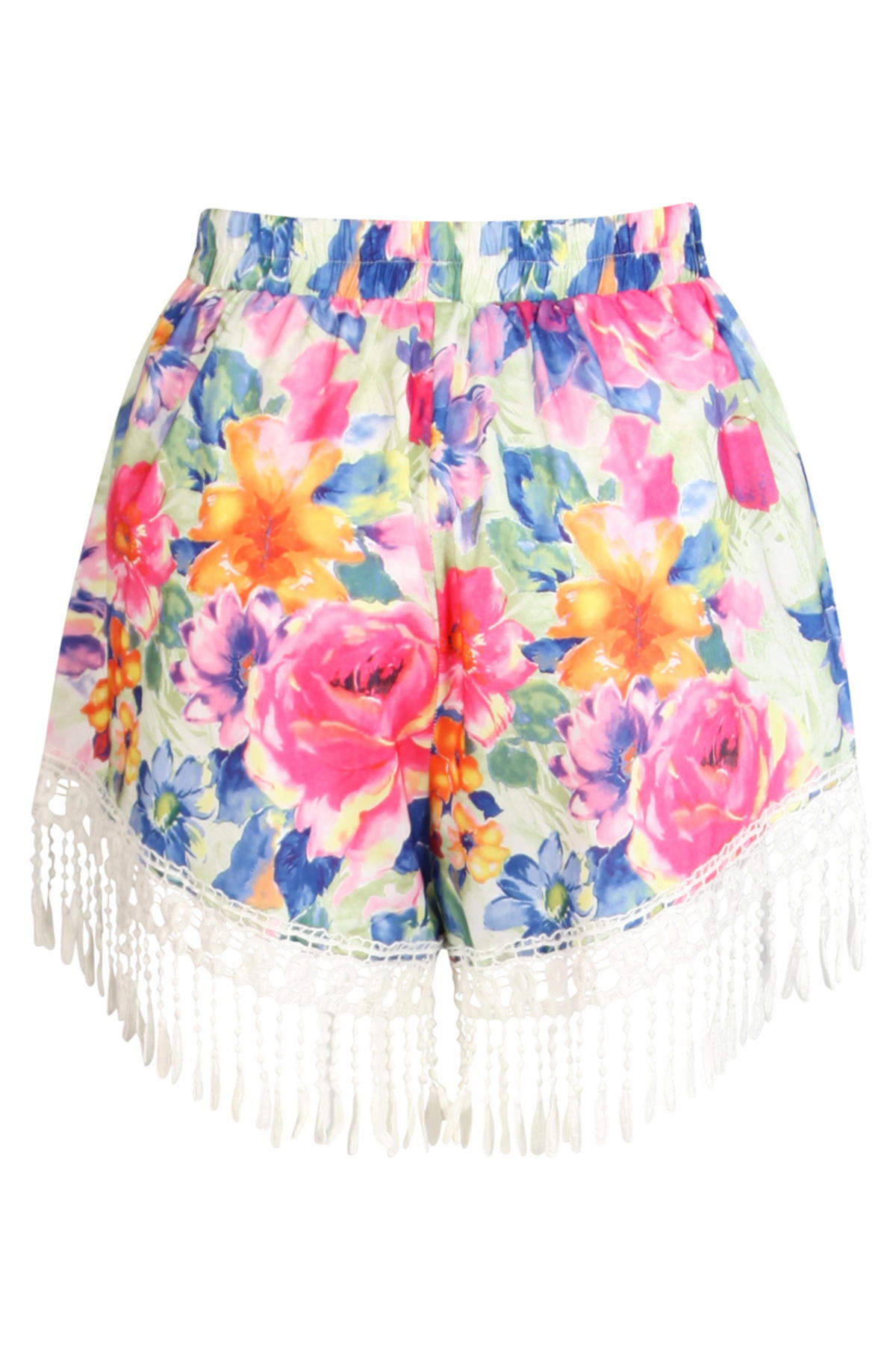 Home > Floral High Waisted Shorts with Crochet Trim